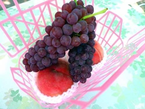 「桃(もも)2個」と「葡萄(ぶどう)デラウェア2房」のお土産付き